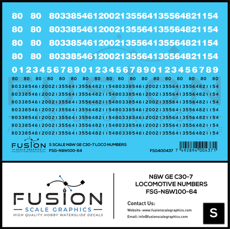 S Scale Norfolk Southern GE C30-7 Locomotive Renumber Decal Set