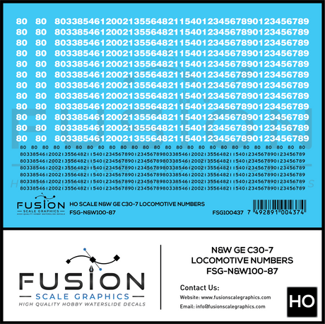 HO Scale Norfolk & Western GE C30-7 Locomotive Renumber Decal Set
