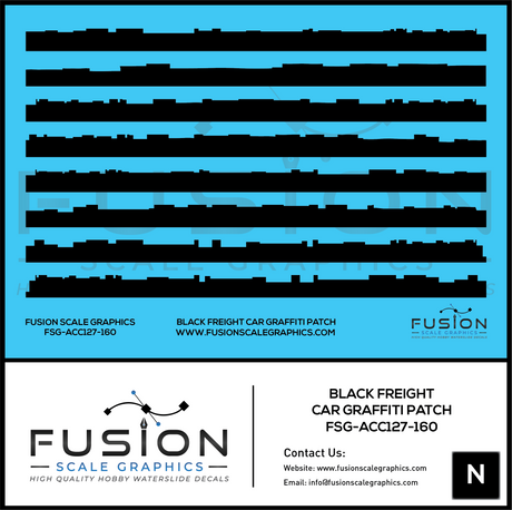 N Scale Black Freight Car Graffiti Paint Patch Out Decal Set