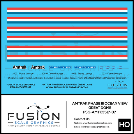 HO Scale Amtrak Phase III Ocean View Great Dome 10031 Decal Set