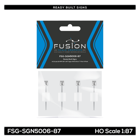 HO Scale 15 MPH 18"x 24" Signs With Silver T-Post 4 Pack