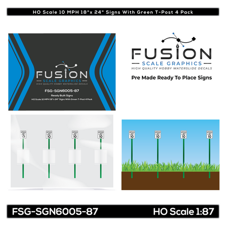 HO Scale 10 MPH 18"x 24" Signs With Green T-Post 4 Pack