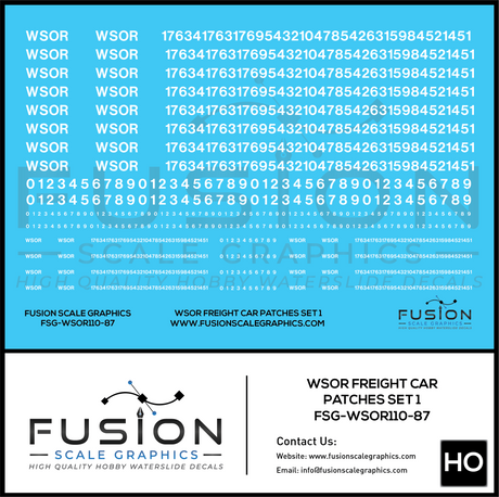 HO Scale Wisconsin & Southern WSOR White Freight Car Patching Decal Set V1