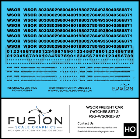 HO Scale Wisconsin & Southern WSOR Black Freight Car Patching Decal Set V1