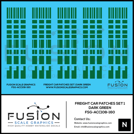 HO Scale Freight Car Patches Set 2 Dark Green Decal Set