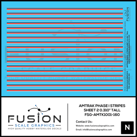 N Scale Amtrak Phase I Stripes Sheet 2 0.310" Tall Decal Set
