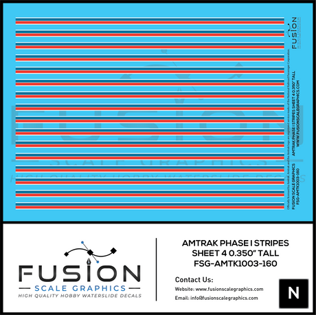 N Scale Amtrak Phase I Stripes Sheet 4 0.350" Tall Decal Set