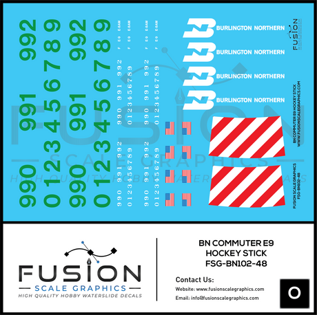 O Scale Burlington Northern Commuter E9 Hockey Stick Locomotive Decal Set