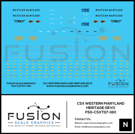 N Scale CSX 1852 W&M Western Maryland Heritage ES44AH Locomotive Decal Set