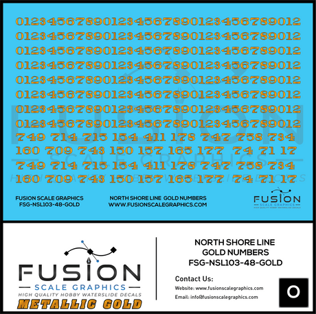 Metallic Gold N Scale North Shore Line Gold Car Numbers Decal Set
