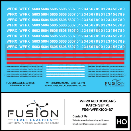HO Scale WFRX Red Boxcars Patching Decal Set V1