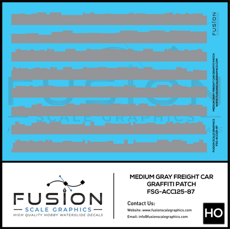 HO Scale Medium Gray Freight Car Graffiti Paint Patch Out Decal Set
