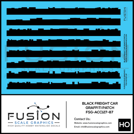 HO Scale Black Freight Car Graffiti Paint Patch Out Decal Set