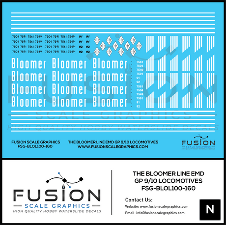 N Scale Bloomer Line EMD GP9 GP10 Locomotives Decal Set