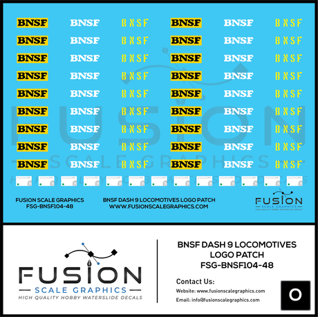 O Scale BNSF Dash 9 Locomotive Cab Patch Decal Set