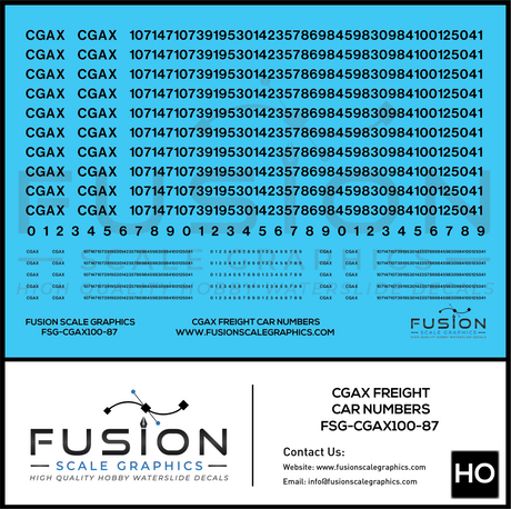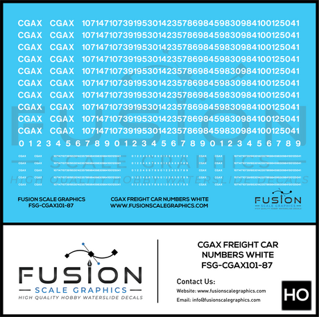 HO Scale CGAX Freight Car Numbering Decal Set