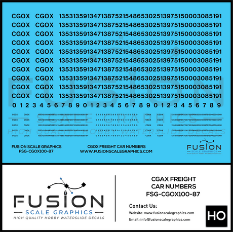 HO Scale CGOX Freight Car Numbering Decal Set