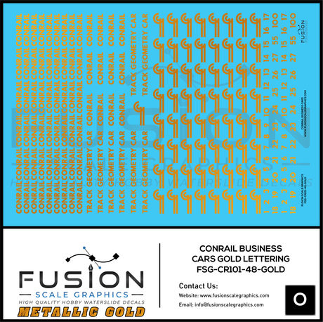 Metallic Gold O Scale Conrail Business Cars Decal Set