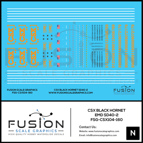 N Scale CSX Black Hornet EMD SD40-2 Locomotive Decal Set