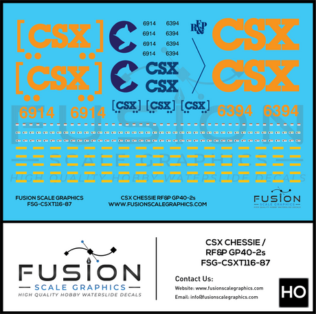 HO Scale Chessie and RF&P GP40-2 "Heritage" Locomotives Decal Set