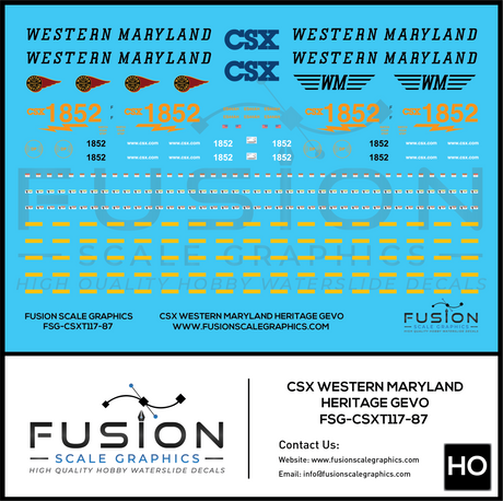 HO Scale CSX 1852 W&M Western Maryland Heritage ES44AH Locomotive Decal Set