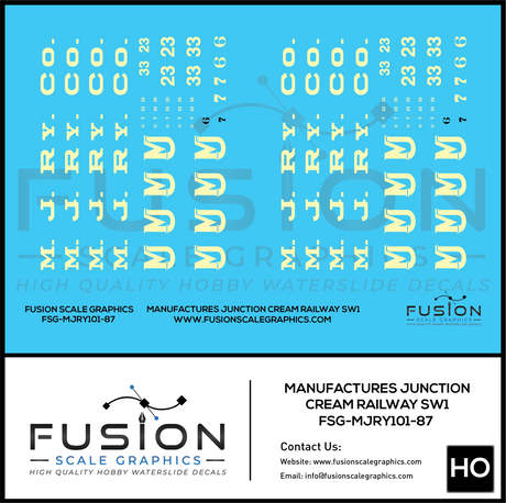 HO Scale Manufactures Junction Railway EMD SW1 Locomotives Cream Color Decal Set