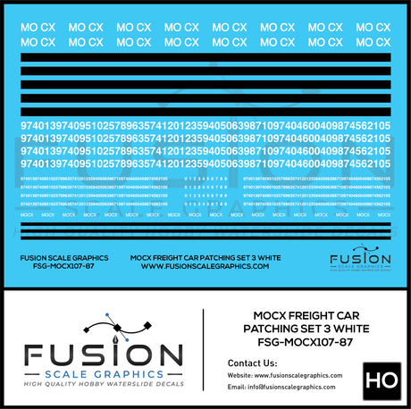 HO Scale White MOCX Covered Hoppers Patching Decal Set 3