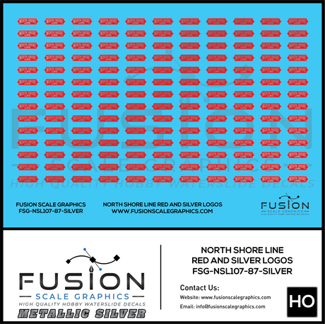 Metallic Silver HO Scale North Shore Line Red and Silver Logos Decal Set