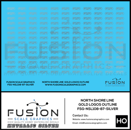 Metallic Silver HO Scale North Shore Line Silver Logos Outline Decal Set