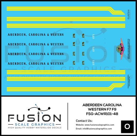 O Scale Aberdeen Carolina & Western Railroad F7 F9 Locomotive Decal Set