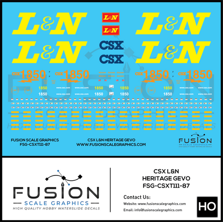 HO Scale CSX 1850 L&N Heritage ES44AH Locomotive Decal Set