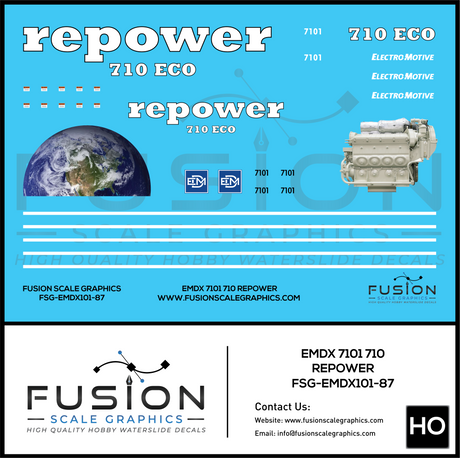 HO Scale EMDX 7101 710 Repower Locomotive Decal Set