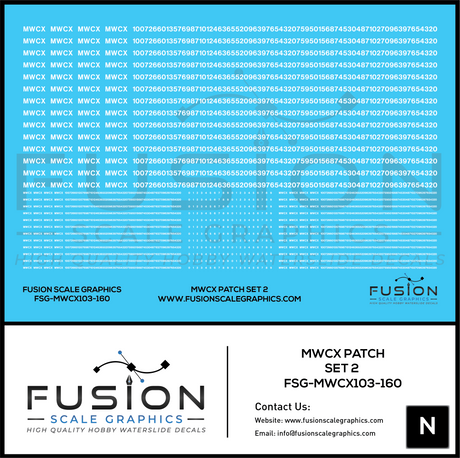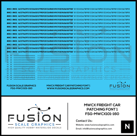 N Scale MWCX Freight Car Patching Font 1 Decal Set