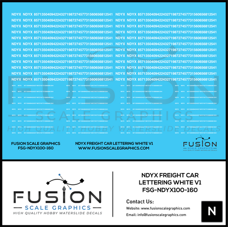 N Scale White NDYX Freight Car Lettering Decal Set