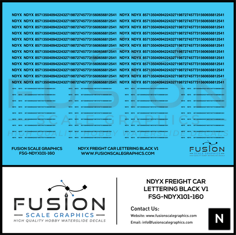 N Scale Black NDYX Freight Car Lettering Decal Set