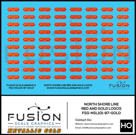 Metallic Gold HO Scale North Shore Line Red and Gold Logos Decal Set