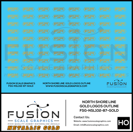 Metallic Gold HO Scale North Shore Line Gold Logos Outline Decal Set