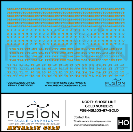 Metallic Gold HO Scale North Shore Line Gold Car Numbers Decal Set