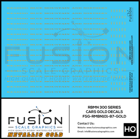 Metallic Gold HO Scale RBMN 300 Series Passenger Cars Decal Set