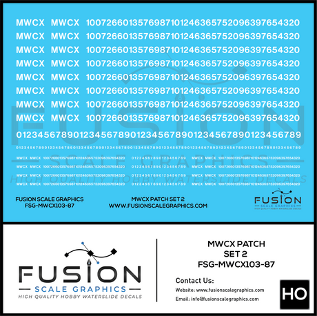HO Scale MWCX Freight Car Patching Decal Set 2