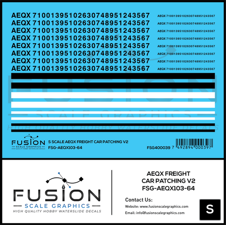 S Scale AEQX Black Freight Car Patching Decal Set V2