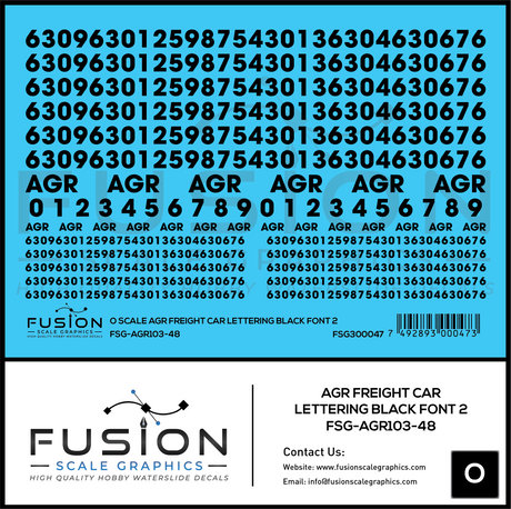 O Scale AGR Black Freight Car Lettering Decal Set Font 2