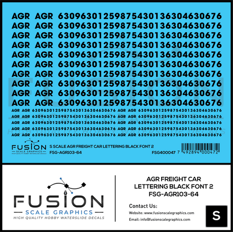 S Scale AGR Black Freight Car Lettering Decal Set Font 2