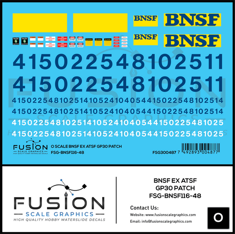 O Scale BNSF Ex Santa Fe GP30 Patch Decal Set