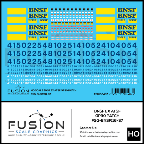 HO Scale BNSF Ex Santa Fe GP30 Patch Decal Set
