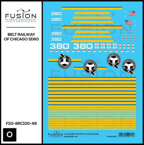 O Scale Belt Railway of Chicago SD60 380 Locomotive Decal Set