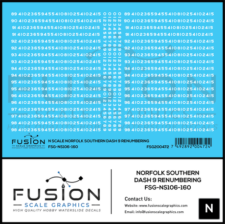 S Scale Norfolk Southern GE Dash 9 Locomotive Renumbering Decal Set