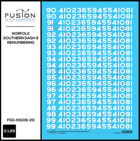 G 1:29 Scale Norfolk Southern GE Dash 9 Locomotive Renumbering Decal Set
