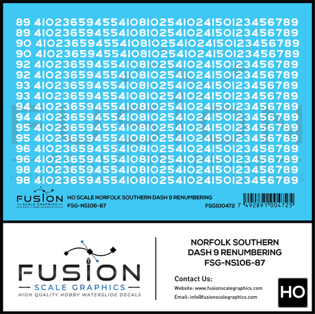 HO Scale Norfolk Southern GE Dash 9 Locomotive Renumbering Decal Set