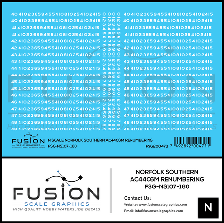 N Scale Norfolk Southern GE AC44C6M Locomotive Renumbering Decal Set
